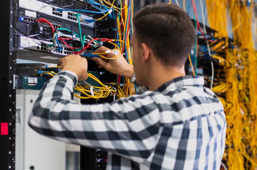 Diseño e instalación de redes de comunicación con cableado de alta calidad, asegurando conectividad eficiente y segura para voz, datos y video en infraestructuras empresariales